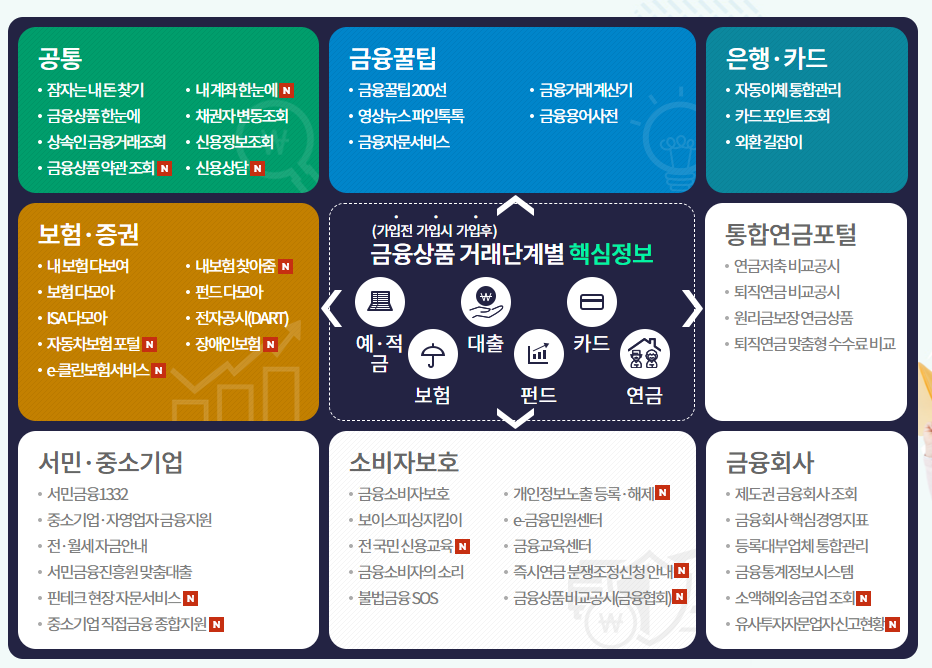 - 금융상품 정보: 금융상품 비교 및 가입/해지 현황 확인
