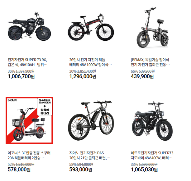 - 특징: 교통비 절약 및 장거리 주행 가능, 강력한 모터 출력과 대용량 배터리 제공
