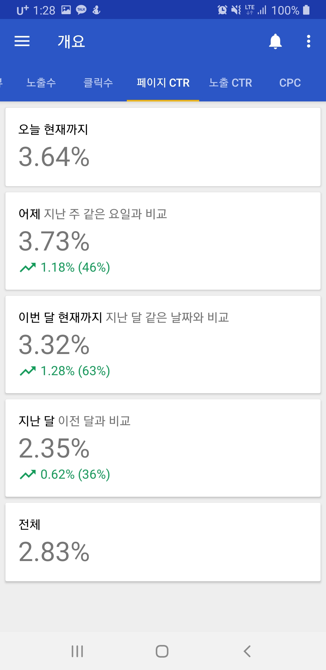 조회수 보다는 페이지뷰 확인하고 페이지 CTR 확인하고 마지막으로 클릭당 단가 곱해주면 심플하게 어바웃으로 확인할 수 있습니다. 예를들어 페이지뷰 1만 나오고 페이지CTR 3.64% 나왔고, 마지막으로 CPC 0.2달러 가정해 보면요.