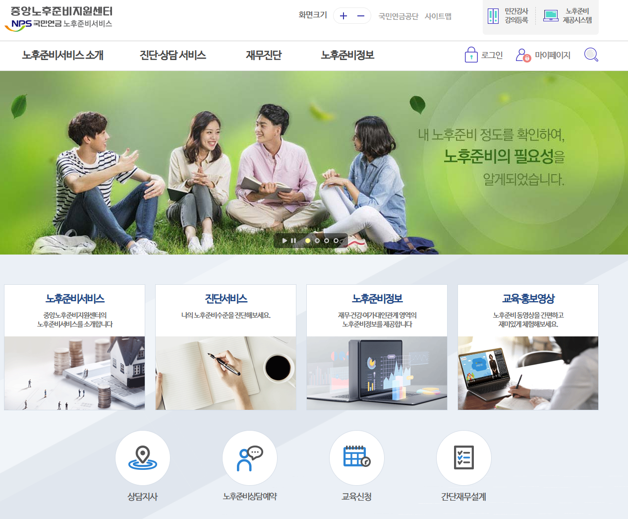 노후 준비 종합 진단, 재무 설계, 온라인 상담까지 무료로 받을 수 있습니다.