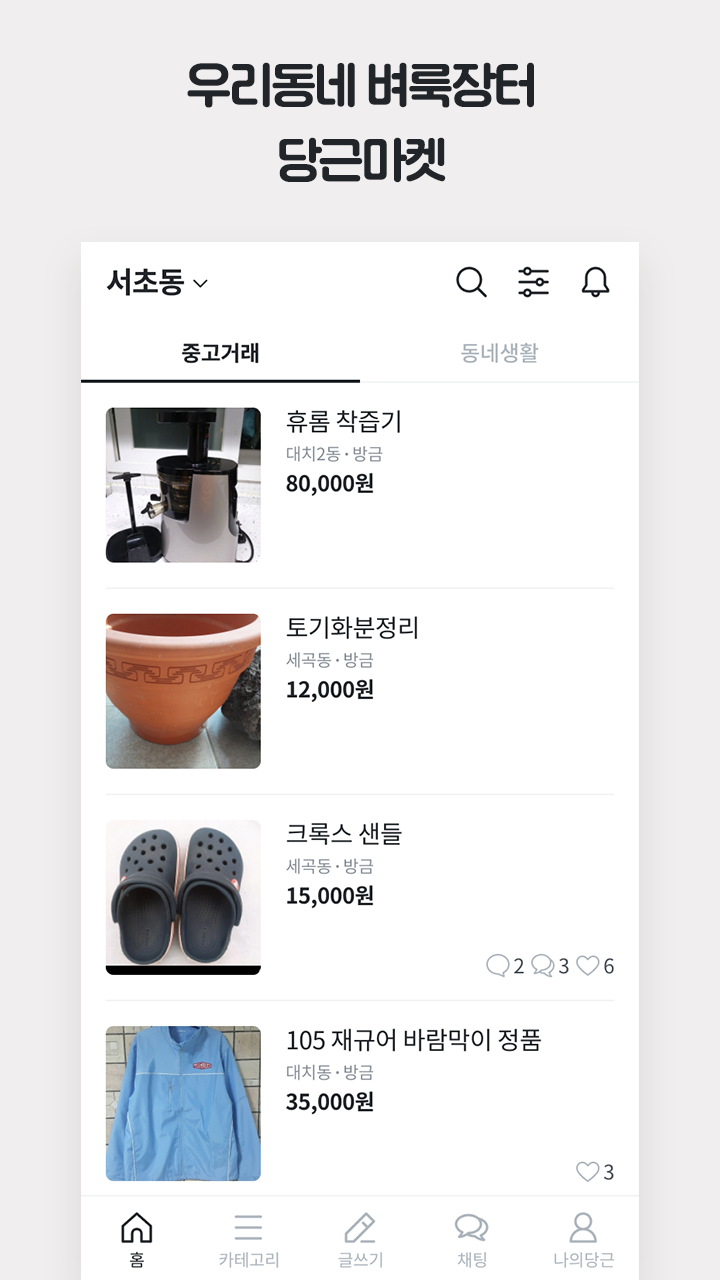 유랑마켓 어플무엇? 스타 애장품 지역 주민들과 거래한국스포츠통신2020.03.15.유랑마켓 방송에서 정확하게 어떤 어플인지 전하지 않았지만 누리꾼들 사이에서는 '당근마켓'이라는 어플이 '유랑마켓 어플'이라는 소문이 퍼지기 시작했다. 위치기반 서비스 '당근마켓'은 지난 2015년 7월 15일 출시된 이래...
