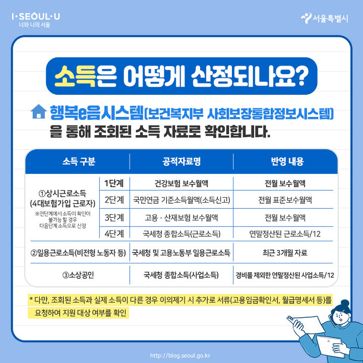 소득산정은 각 단계별 적용하며 전단계에서 소득확인이 어려우면 다음단계로 넘어갑니다.