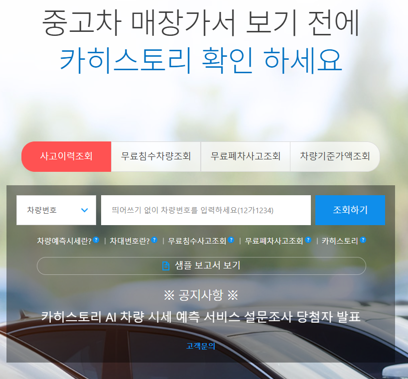 카히스토리 사고이력조회 / 침수전손사고조회 / 변경이력