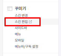 꾸미기 스킨 편집으로 가서 HTML 편집 클릭하세요.