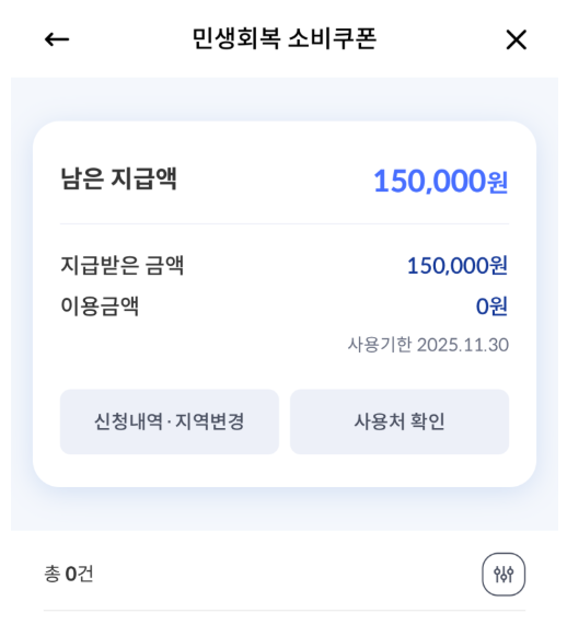 민생회복 소비쿠폰의 이용 내역은 카드사 앱이나 홈페이지에서 확인 가능하며, 사용 후에는 문자 메시지나 앱 알림으로 잔액이 안내됩니다.