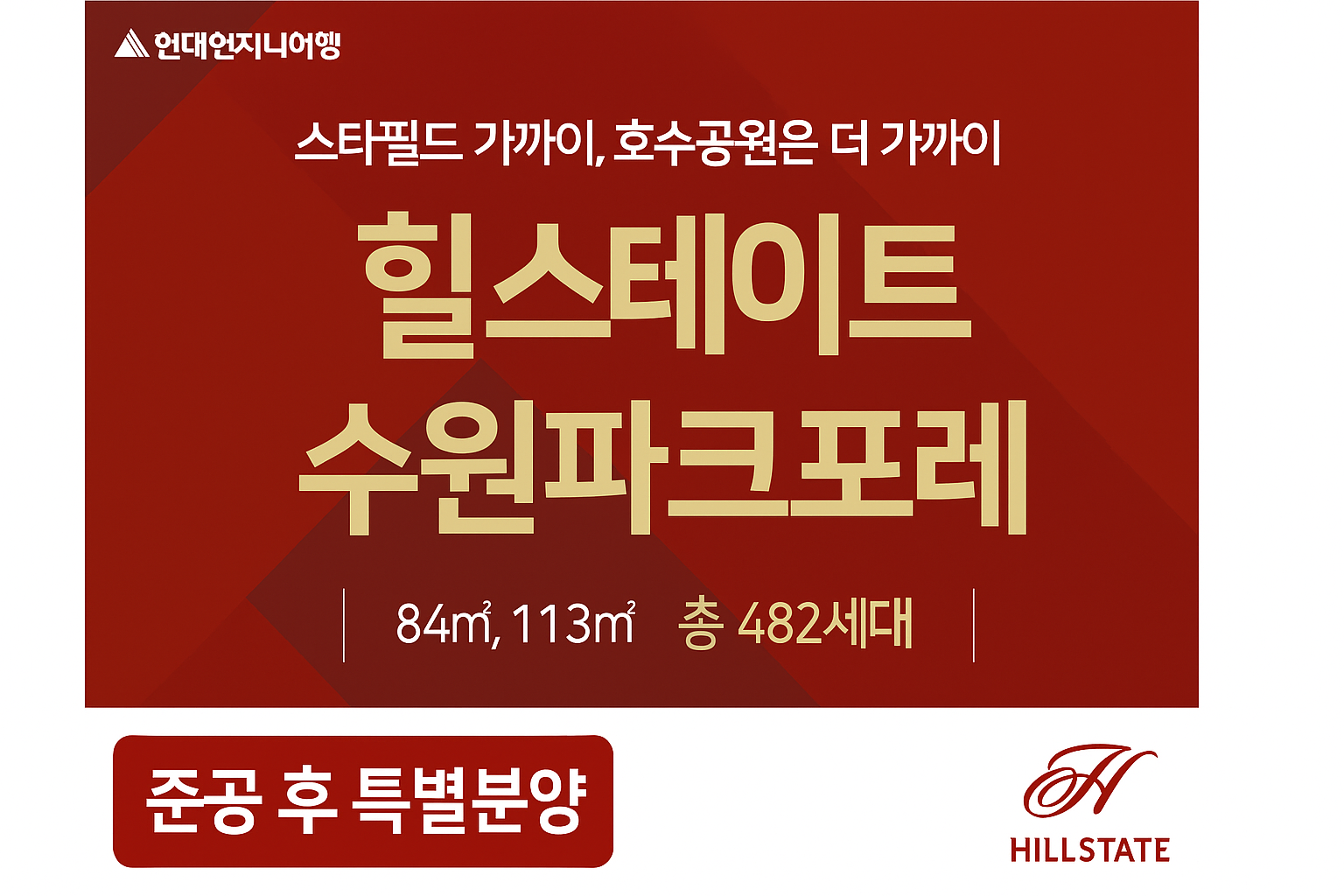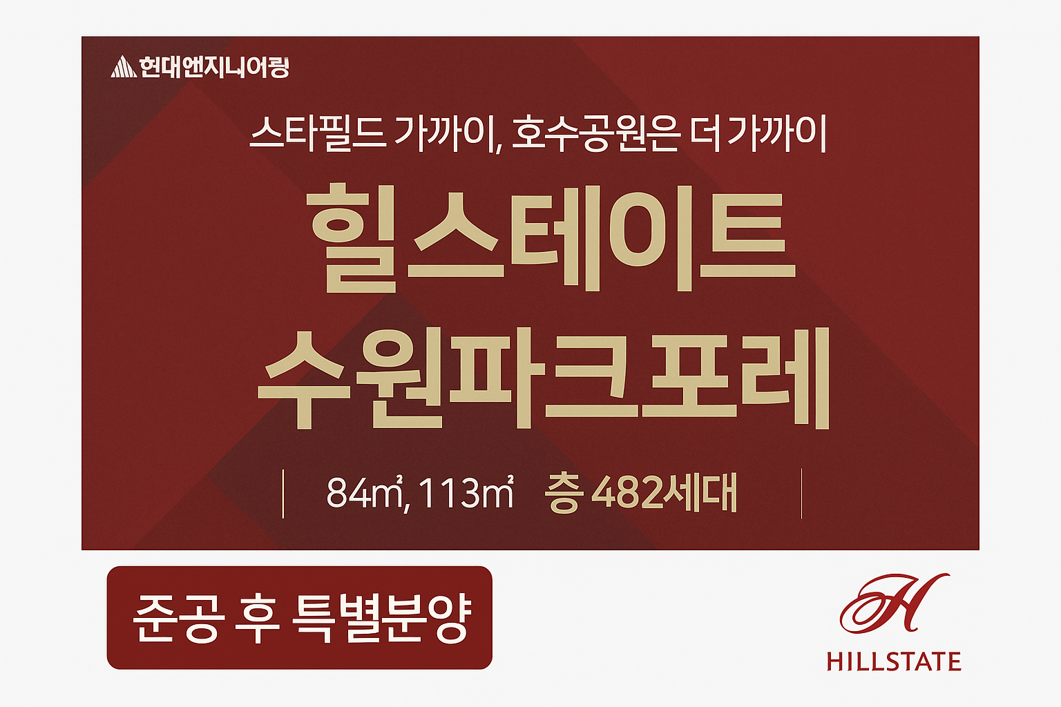 내 집 마련의 꿈, 여전히 막막하신가요? 지금 여기, 당신의 삶을 바꿀 특별한 기회가 있습니다. 스타필드와 호수공원을 내 집처럼 누리는 완벽한 입지, 힐스테이트 수원파크포레에서 당신의 라이프스타일을 완성하세요! 준공 후 특별 분양으로 즉시 입주가 가능하며, 놀라운 혜택까지 기다립니다. 지금 바로 이 글을 확인하고, 당신의 미래를 바꿔보세요!