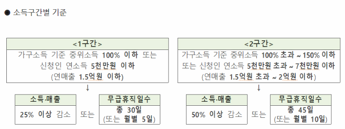 또 2020년 3~5월 중 일정 기간 이상 무급 휴직하는 경우도 소득 감소 요건에 해당한다.