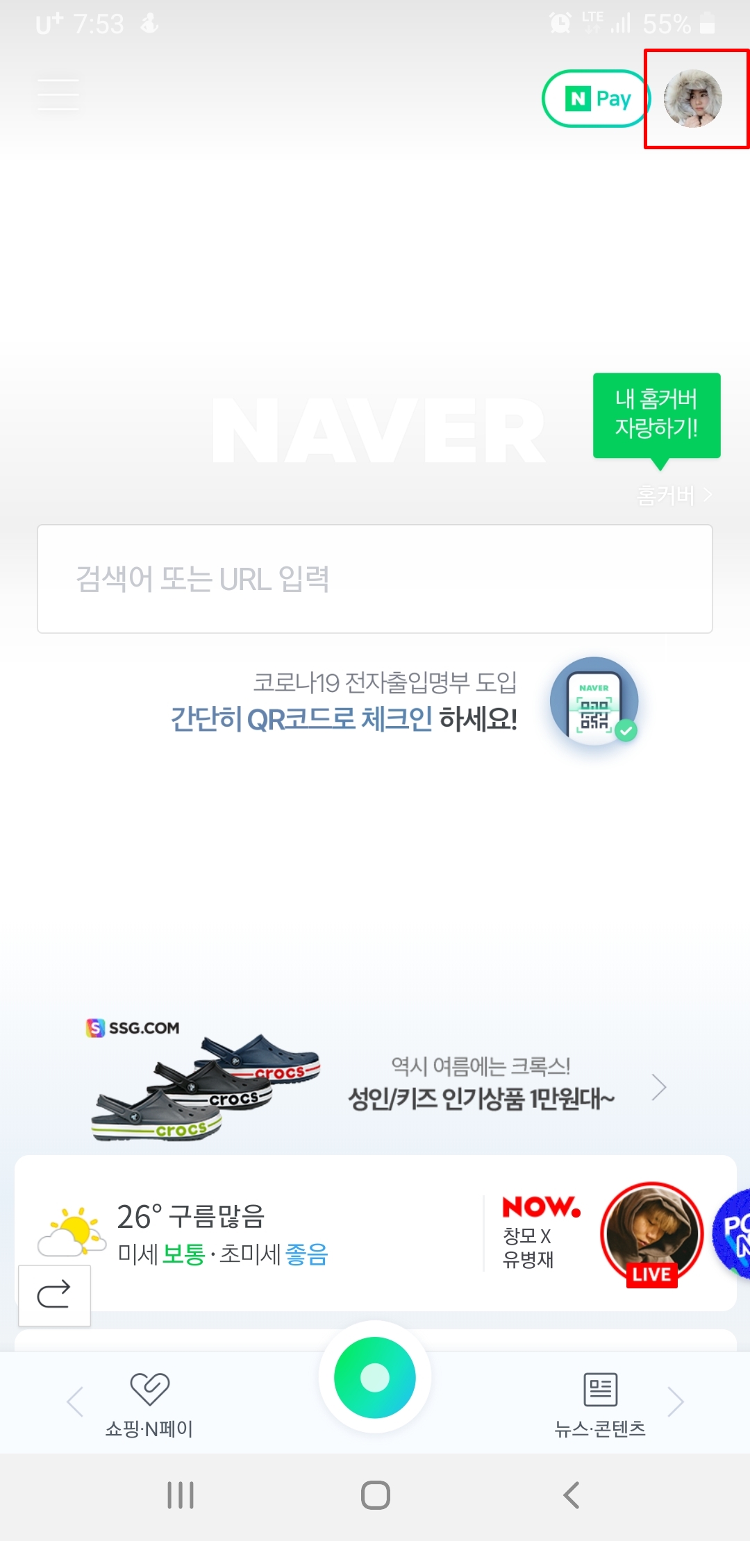 모바일 네이버를 이용한 전자출입명부 사용법은 간단합니다. 이 글을 보시는 이웃님들의 폰에서 그대로 해보시면 됩니다. 네이버 앱이나 웹에서 로그인을 한 다음 우측 상단 프로필 아이콘을 클릭하고, 내 서랍이 제공하는 QR 체크인 버튼을 누르면 된다. 최초 이용할 때와 매달 한 번 휴대전화번호 인증만하면 된다.