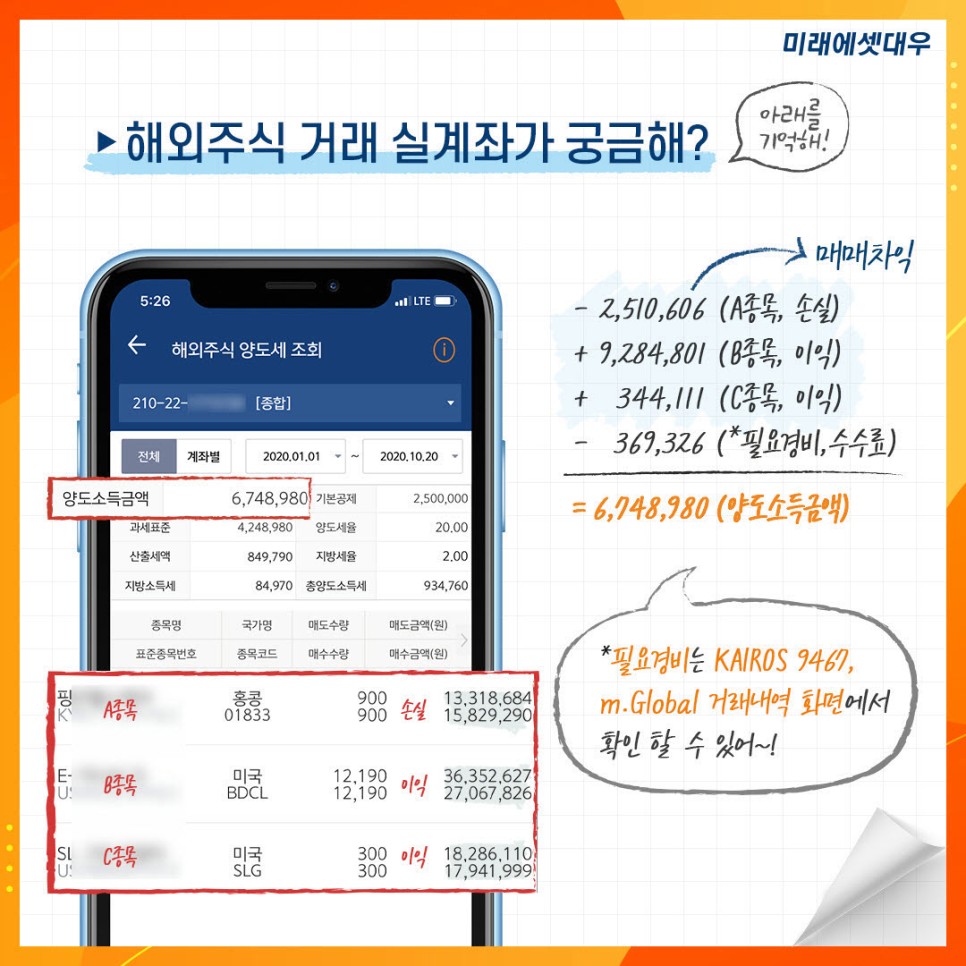 그리고 2020년부터는 국내 주식에서 발생한 양도소득(상장주식의 경우 대주주 요건 충족 시, 양도소득이 비과세되는 경우 제외)과 해외 주식에서 발생한 양도소득을 합해서 계산할 수 있게 됐다.