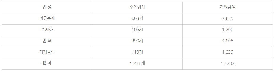 □ 이번에는 최근 출판 대형도매상 부도로 인한 영세 출판제조업체 지원 포함 지난 1차 공모 대상에서 제외된 귀금속제조 업종이 신규 추가되었으며 기계금속 업종은 참가가능 대상을 확대하여 더 많은 업체들이 긴급자금을 신청할 수 있도록 배려하였다.