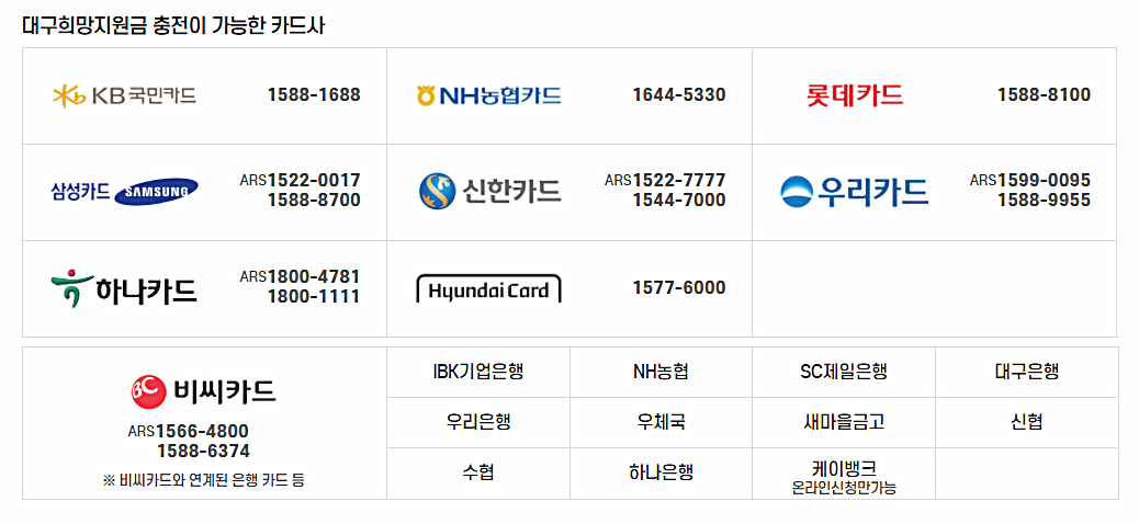 ■ 대구희망지원금 사용가능 카드: KB국민 개인 신용/체크카드 전체