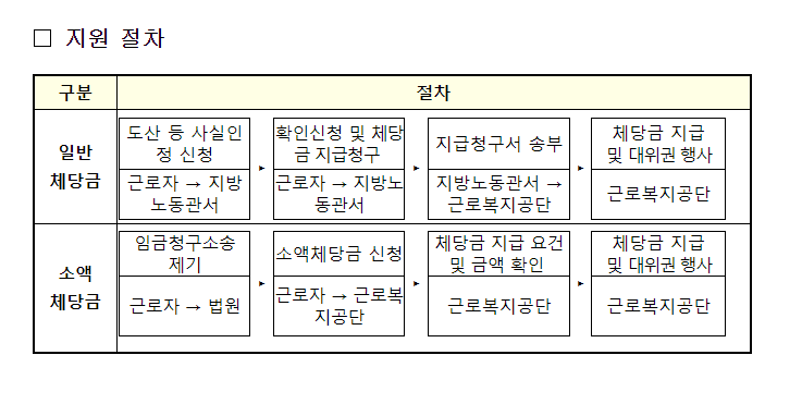 ㅇ 이에 따라 근로자가 퇴직하지 않아도 체당금을 신속히 지급받을 수 있게 되어 근로자의 생활안정에 큰 도움이 될 수 있을 것으로 기대된다. 보다 자세한 내용은 아래를 참고하세요!