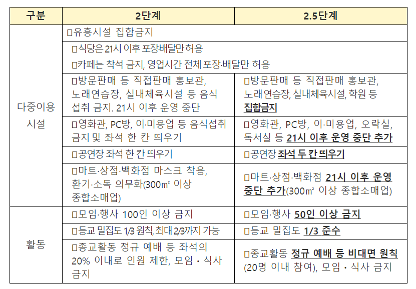 수도권에서 2.5단계가 시작됩니다. 마지막 3단계까지 겨우 1계단 앞입니다.
