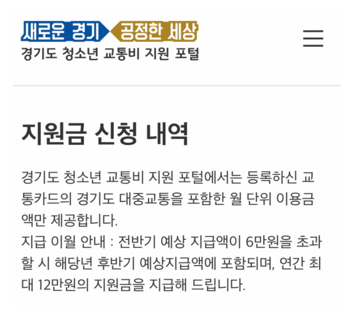 신청방법 > 경기도 청소년 교통비 지원 포털 사이트에서 신청