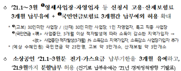 소상공인 사회보험료 등 납부유예 (29만명)