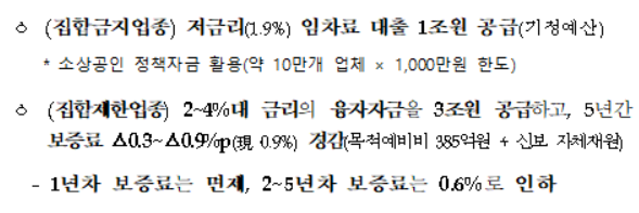 집합제한 업종은 2~4%대 금리로 임차료 대출이 진행 예정이다.