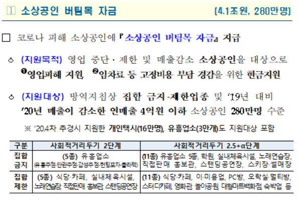 소상공인 버팀목 자금 (280만명 대상)