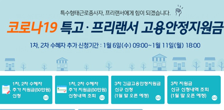 코로나 장기화로 소득이 감소한 특수형태근로종사자(특고)와 프리랜서에게 50/100만원을 지원하는 대책입니다.