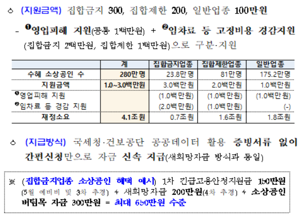 지원대상은 집합금지와 집합제한 업종 소상공인과