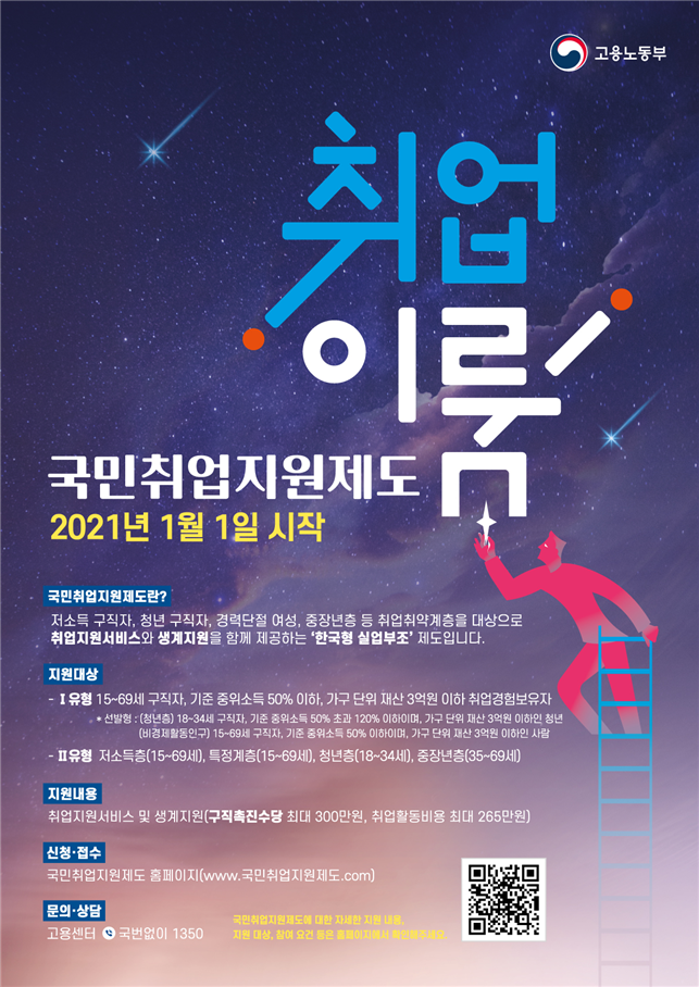 새해에는 취업취약계층에게 월 50만원씩 6개월간 총 300만원을 지원하는 ‘국민취업지원제도’가 시행된다.