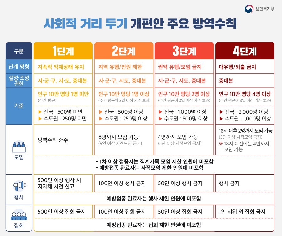 사회적 거리두기 4단계 기준은