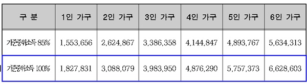 기준 중위소득은 85% 이하에서 100% 이하로, 재산은 2억5천700만원 이하에서 3억2천600만원 이하로 완화된 기준을 유지한다.