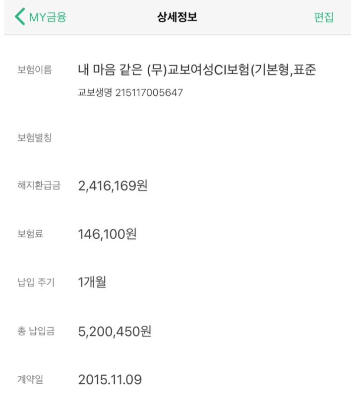 월 납입금, 총 납입금, 계약일, 만기일 등의 정보를 얻을 수 있어요.