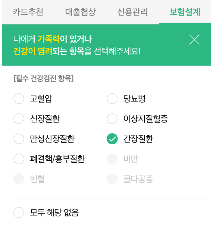 그렇다면 보험설계 항목을 이용해보는 것도 좋습니다. 특히 지금 건강이 좋지 않거나,